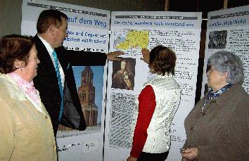 Dr. Volker Tschuschke (l.) vom Kreisarchiv und Gerd Schmalstieg vom Stadtarchiv Bocholt (r.) erläuterten, wie sich die niederländische Verwaltung auf den Alltag der Menschen in Suderwick auswirkte.