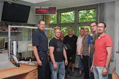 Frank Hörst (l.) erläuterte der Gruppe die Arbeitsabläufe in der Leitstelle.