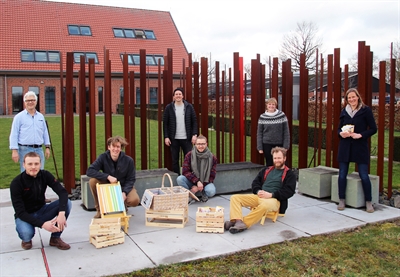 Freuen sich auf die Kooperation: Dozent Jan Eisermann (hinten links), Melanie Schlüters (r.) und die Studierenden der Akademie für Gestaltung. Studierende vor Haus Kump © Münsterland e.V.