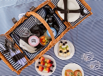 Geht es auch anders als mit dem klassischen Picknickkorb? Picknickkorb auf Decke © Münsterland e.V./Romana Dombrowski