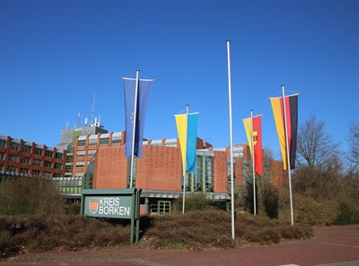 Für den gesamten Kreis Borken wurde jetzt eine neue Luftbildbefliegung durchgeführt. Hier zu sehen: Das Kreishaus in Borken.