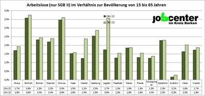 Grafik: Arbeitslose (nr SGB II) in den Städten und Gemeinden im Jahresvergleich