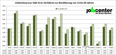 Grafik: Arbeitslose (nur SGB II) in den Städten und Gemeinden im Jahresvergleich