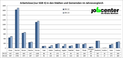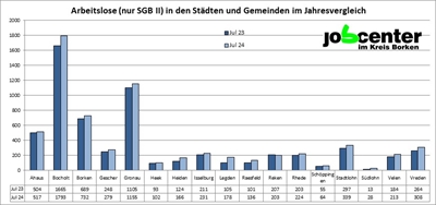 Grafik: Arbeitslose (nr SGB II) in den Städten und Gemeinden im Jahresvergleich