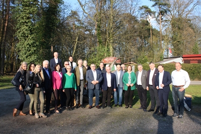 Gruppenbild beim Treffen der Steuerungsgruppe (v. li.): Martin Grüter, Daniel Berger, Michael Reiners, Tom Voortman, Klaus Brockmeier, Roberto Goncalves, Lisette van der Giessen, Dr. Christel Wies, Dr. Stefan Kuks, Hein Pieper, Johanna Klare, Kim ter Keurs, Friedel Wielers, Lara Wöhler, Klaas Dijkstra, Kees Jan Leuvenink, Sandra Cichon