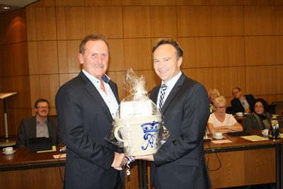 Hans-Georg Fischer aus Ahaus (links) ist seit 25 Jahren für die SPD Mitglied des Kreistages - Landrat Dr. Kai Zwicker gratuliert zu diesem eindrucksvollen Jubiläum