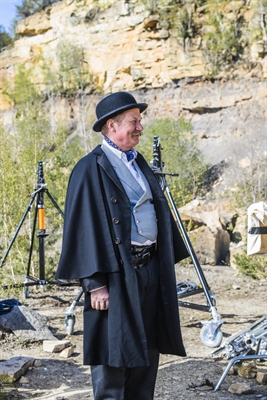 Harald Burmeister in der Rolle des Grubenbesitzers Sööt bei den Dreharbeiten im Ibbenbürener Steinbruch. Foto: LWL/Lindenbaum