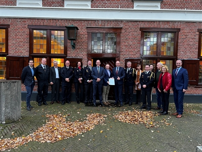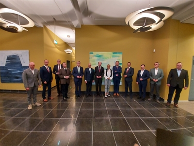 Besuch im Borkener Kreishaus: Die polnische Delegation um den Breslauer Landrat Roman Potocki (vorne, 3. v. li.) und die hiesigen Kreistagsabgeordneten wurden von Landrat Dr. Kai Zwicker (2. v. li.) und mehreren Verwaltungsmitgliedern begrüßt.
