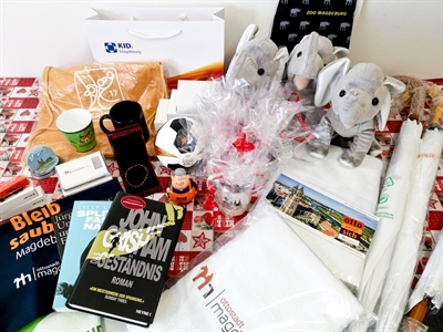 Wer Fragen wie diese beantworten kann, sollte mitmachen, denn es winkt mit etwas Glück einer von vielen attraktiven Preisen. Dazu zählen in diesem Jahr u. a. Freikarten für die Gruson-Gewächshäuser und das neueröffnete Dommuseum sowie ein Freiexemplar des dazugehörigen Ausstellungskataloges, Weihnachtsmarkttassen, Powerbanks, ein Minilautsprecher, zwei Otto-Badetücher, zwei Schirme der Aktion „Bleib sauber Magdeburg“, ein Gutschein für eine winterliche Stadtrundfahrt, eine Magdeburg-Schneekugel, USB-Sticks, Romane, drei Plüsch-Elefanten, zwei Multifunktionstücher und zwei Tassen aus dem Zoo-Shop, ein Armband aus unserer chinesischen Partnerstadt Harbin und ein Überraschungspaket, deren Inhalt noch nicht verraten wird.