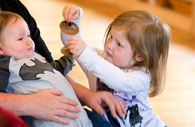 Die Musikzwerge treffen sich jeden Donnerstag von 8.45 bis 9.30 Uhr und von 9.45 bis 10.30 Uhr.
