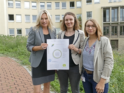 Sozialdezernentin Prof. Dr. Andrea Friedrich (von links) gratulierte Yvonne Blöcker und Madlen Kestner zur Auszeichnung zum Bündnis des Monats August 2019.