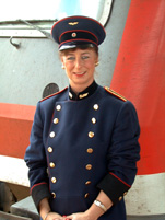 In dieser historischen preussischen Uniform begleitete Brigitte Rieger im Auftrag der Stadt Bocholt (Geschäftsbereich Öffentlichkeitsarbeit, Bruno Wansing) und der Deutschen Bahn AG am 21. und 22. September den "Bocholter" um auf dessen Jubiläum hinzuweisen und den "Bocholter" selber in Schokolade zu verteilen.