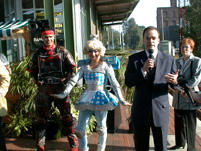 Bürgermeister Klaus Ehling begrüßte am 23. September 2000 die Gäste beim Jubiläumsempfang aus Anlass des 10-jährigen Jubiläums des "Bocholters". Ihm zur Seite standen die Starlight-Dancer aus Bochum, die die Reisenden, die an diesem Tage zum Kinderfahrpreis den "Bocholter" nutzen konnten, in die Innenstadt begleiteten.