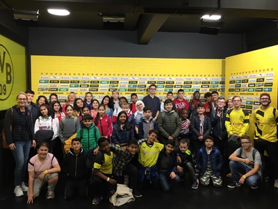 Bildzeile 2: Die Sprachferiengruppe aus Fröndenberg machte einen Ausflug ins Fußballstadion von Borussia Dortmund. Foto: Maria Galisteo – Kreis Unna
