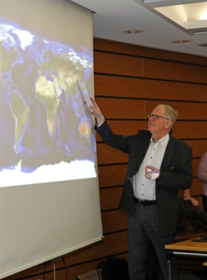 Nach der Begrüßung durch Landrat Cay Süberkrüb hielt Martin Fliegner, Geschäftsführer der Umweltbildungsfirma Geoscopia aus Bochum, einen interaktiven Vortrag über die Veränderungen von Klima und Wetter. Die Jugendlichen konnten anhand von Satellitenbildern sehen, wie der Treibhauseffekt, der Anstieg des Meeresspiegels oder Waldbrände die Erde verändern.