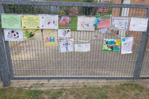 Um mit den anderen Familien und Kindern in Kontakt zu bleiben, sind die pädagogischen Fachkräfte kreativ geworden: Sie haben den Zaun am Familienzentrum mit bunten Bildern, Nachrichten und Gebasteltem geschmückt und kommunizieren so mit allen, die aktuell nicht die Kita besuchen dürfen. Alle Familien wurden außerdem dazu eingeladen, auch bunte Bilder an den Zaun zu hängen. „So können sich die Familien, Kinder und Mitarbeitenden untereinander austauschen und haben das Gefühl, dass sie in dieser außergewöhnlichen Zeit nicht allein sind“, erklärt Einrichtungsleiterin Alina Wagner.