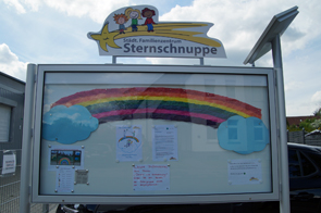 Das pädagogische Team des Städtischen Familienzentrums Sternschnuppe erlebt in der jetzigen angespannten Zeit, aufgrund des Coronavirus, auch Momente besonderer Freude: Schöne Briefe und kleine Kunstwerke von Kindern, die zurzeit nicht in der Kita sind, erreichen das Team. Noch ein Grund zur Freude: Der lang ersehnte Schaukasten mit dem Logo der Einrichtung steht nun vor dem Familienzentrum und bietet Platz für Informationen.