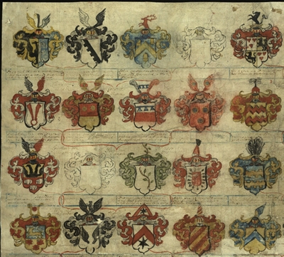 Eine wichtige Quelle: Die Ahnentafel des Leberecht von Guericke, ca. 1721/25 (Ausschnitt) (Foto: Stadtarchiv Magdeburg, Rep. 15, III 3)