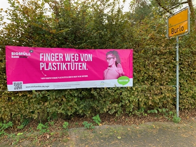 Mit dem Aufhängen von Bannern an zahlreichen Stellen im Borkener Stadtteil Burlo, ist das Pilotprojekt "Burlo kann Bio" von der Entsorgungsgesellschaft Westmünsterland mbH (EGW) und der Stadt Borken gestartet. Die Banner, die der bundesweiten Kampagne "#wirfuerbio" entstammen, sollen - quasi an jeder Ecke - nochmals allen ganz klar vor Augen führen, dass Plastik in der Biotonne nichts zu suchen hat.
