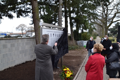 Gedenktafel auf dem Hauptfriedhof erinnert an die Opfer des Attentats