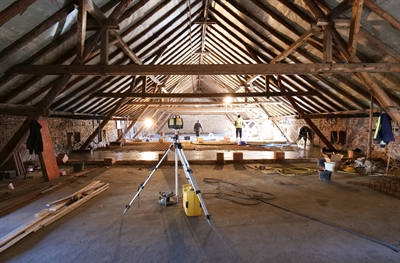 BZ:. Die Umbauarbeiten des Schafstalls auf Haus Opherdicke schreiten voran. Aufgrund der denkmalgeschützten Substanz müssen die Rohbauarbeiten mit besonders großer Sorgfalt ausgeführt werden. Foto: Fabiana Regino – Kreis Unna