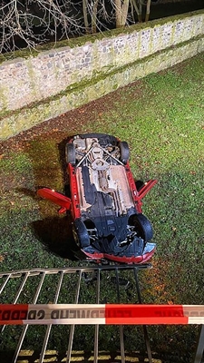 Der Unfallverursacher landete nach dem Durchbrechen des Zauns im Schlossgraben. Die Feuerwehr musste helfen.