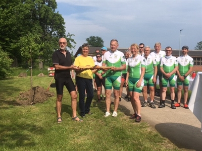 Ein Etappenziel lag dieses Jahr im Kreis Unna: Natürlich auf dem Rad empfing der für Umwelt und Mobilität zuständige Kreis-Dezernent die Radler an der Bausenhagener Straße in Fröndenberg. Dort wurde anlässlich der geplanten Radfernfahrt 2020 bereits eine 400 Meter lange Baumreihe aus 39 Hainbuchen gepflanzt, die im Beisein der Radler feierlich „getauft“ werden sollte. Leider fiel die Radfernfahrt 2020 der Pandemie zum Opfer.