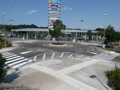 Am Fachmarktzentrum "Rondo" sind im bestehenden Kreisel Fußgänger-Überwege neu errichtet worden.