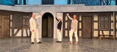In diesem Jahr übernimmt die Hanauer Wolfgang Arnim Nagel-Stiftung die Finanzierung der Malerei und Gestaltung des Bühnenbildes der Brüder Grimm Festspiele. (v.l.nr.) Intendant Frank-Lorenz Engel, Stiftungsvorsitzende Barbara Nagel und Geschäftsführerin Sabine Krempel.