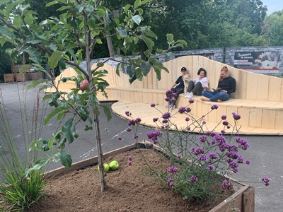 Urbane Pflanzbeete und besondere Sitzmöbel aus Holz locken ab Freitag in den Fronhof und könnten in Zukunft auch die Innenstadt bereichern.