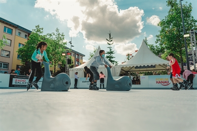 Hanau. Klimaneutrales Eislaufen mitten in der City – die ungewöhnliche Idee der Hanau Marketing GmbH (HMG) findet bei spätsommerlichen Temperaturen Anklang beim Publikum: Die Stadtwerke-Eisarena am Forum Hanau hat bereits in der ersten Woche nach ihrem Start über 1400 Kufenfans in den Bann gezogen. „Vor allem an den Wochenenden und in den frühen Abendstunden ist die Nachfrage regelmäßig sehr gut“, sagt Christian Holle von der Betreiberfirma „Holle’s am Schlossgarten – Events & Catering“. Für die nächsten Wochen plant er mit seiner Crew zahlreiche Aktionen – und hofft auf eine Fortsetzung des trockenen und milden Spätsommerwetters.