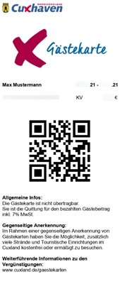 Eine einfache, zukunftsorientierte Handhabung der Gästekarte (ehemals Kurkarte) – das ist das vorrangige Ziel der neuen digitalen Gästekarte in der Stadt Cuxhaven. Die Cuxhaven-Gäste können sich den Nachweis der bezahlten Kurabgabe ab sofort bereits vor Anreise bequem auf ihr Smartphone laden. Mit dieser Neuerung legt das Nordseeheilbad Cuxhaven den Grundstein für weitere Digitalisierungsmaßnahmen.