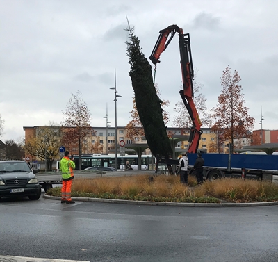Beim Aufbau des Weihnachtsbaums am Kreisel Nordstraße.