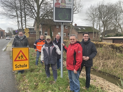 „Man merkt schon, dass die Autos abbremsen“, betont Anwohner Heinisch. Er kenne das von den eigenen Gewohnheiten: Ein trauriges Gesicht auf dem Display wolle man nicht sehen. Und auch für Cuxhavens Oberbürgermeister Uwe Santjer und den neuen Altenbrucher Ortsbürgermeister Christoph Frauenpreiß ist das Display eine absolute Bereicherung für die Sicherheit der Kinder im Straßenverkehr. Beide sprachen ihren Dank für die Spende von Richard Heinisch und der Rettungsstiftung Jürgen Pegler aus, die noch sechs Warnhinweisschilder als zusätzliches Geschenk zum Radardisplay für den Ort überreichten.