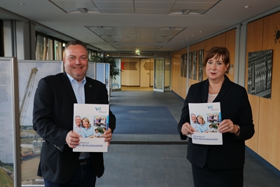 | Landrat Bodo Klimpel und BIP-Koordinatorin Heike Rommler präsentieren den neuen Seniorenwegweiser. |