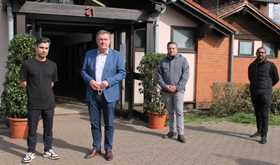 Geplant wird zudem ein hoher Personalaufwand, berichtete Musleh dem Oberbürgermeister. Zwei Unterkunftsleitungen stehen zur Verfügung, Sicherheitskräfte, Sozialarbeiter und Kinderbetreuer, Hauswirtschaftshilfen und geschulte Mitarbeiter aus seinem Unternehmen für die Hygienestation samt Testzentrum und Maskenausgabe. Zudem versuche er mit den Nachbarn und Hilfsorganisationen Kontakt aufzunehmen, um ein ehrenamtliches Netzwerk aufzubauen, dass vor allem für die Kinder zum Beispiel sportliche Angebote organisiert und ihnen hilft, die traumatischen Erlebnisse zu verarbeiten.