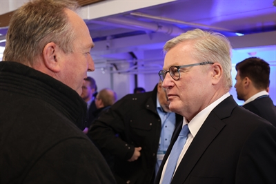 Im Dialog über den Hafenstandort Cuxhaven: Cuxhavens Oberbürgermeister Uwe Santjer (links) und der niedersächsische Wirtschaftsminister Bernd Althusmann. Foto: Stadt Cuxhaven