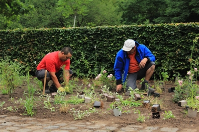 Während der Arbeiten werden im ersten Schritt die alten Pflanzbereiche abgetragen. Anschließend werden Stauden, Rosen und Gräser gepflanzt. Passenderweise werden dabei zwei besondere Rosensorten verwendet: „Gebrüder Grimm“ und „Stadt Hanau“. Zeitgleich bestechen die umliegenden Gräser und Stauden durch besondere Blattstrukturen. „Die Pflanzen haben wir ganz bewusst ausgewählt, um ganzjährige Blüheffekte zu erzielen. So ist der Rosengarten auch außerhalb der Blütezeit der im Mittelpunkt stehenden Zierpflanzen ein echter Hingucker“, sagt Stadtrat Thomas Morlock. Farblich wird der Rosengarten vor allem in Weiß, Lila und Rosa erstrahlen.