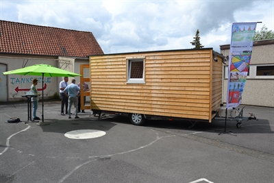 Bildzeile 3: Der Bauwagen im Hof des GoIn. Foto Max Rolke Kreis Unna