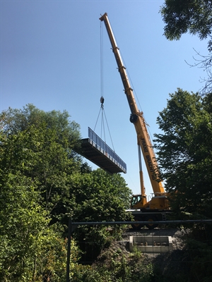 Bildzeilen: Die Radbrücke wird eingehobe. Foto: Stadt Kamen - Rüdiger Büscher