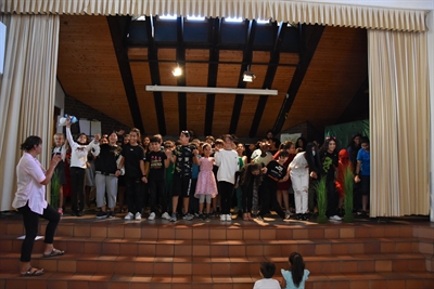 Um ihren Familien zu zeigen, was sie in den vergangenen Wochen gelernt hatten, hatten die Kinder kleine Aufführungen vorbereitet. So lasen die Teilnehmenden des Deutschsommers das bekannte Kinderbuch „Ronja Räubertochter“ von Astrid Lindgren, welches, wie in den Jahren zuvor auch, aus Mitteln des Kultusministeriums finanziert wurde. Allerdings: Zu Ende lesen konnten die Kinder das Buch in der kurzen Zeit nicht. Daher erhielten sie zum einen den Anreiz, den Roman, den sie zum Abschluss des Deutschsommers geschenkt bekamen, zu Hause fertig zu lesen. Zum anderen erhielten sie die Aufgabe, sich ein eigenes Ende zu überlegen. Dies taten die Kinder in Form kurzer Theateraufführungen.