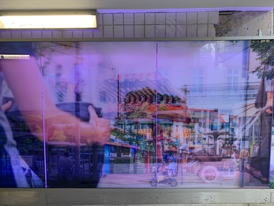 LED-beleuchtete Glaspanelle an den Wänden der Personenunterführung des Hanauer Hauptbahnhofs sollen diesen zukünftig optisch aufwerten. Eine erste Musterfläche wurden bereits angebracht, eine Bemusterung der Motive wird Ende des Monats erfolgen.