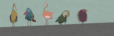 „Flugversuch im Federkleid“ wurde anhand Techniken verschiedenster Art hergestellt. Von Bildercollagen über Acryl- und Ölfarbe bis hin zu halbdigitalen, illustrativen Werken. Das Oberthema, die Welt der Vögel, bietet für viele, aber nicht für alle Werke die Grundlage.