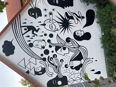 „Innenstadtbelebung ist mehr, als neue Einkaufserlebnisse zu schaffen. Die Kundinnen und Kunden wollen sich in der Innenstadt auch wohlfühlen. Deshalb ist es uns ein wichtiges Anliegen, Freiräume und Plätze aufzuwerten“, sagte Hanaus Oberbürgermeister Claus Kaminsky, als Ende Juli im Rahmen des Stadtentwicklungsprogramms „Hanau aufLADEN“ 60.000 Euro Förderung von den hessischen Ministern für Wissenschaft und Kunst, Angela Dorn, und Wirtschaft, Tarek Al-Wazir, übergeben wurden. Nach gut sieben Wochen ist die Fassade des 1972/73 erbauten Parkhauses „Am Forum“ (506 Parkplätze; 24 Stunden geöffnet) frei. „Schon der Entwurf des Hanauer Künstlers Engin Dogan hat uns überzeugt. Das Kunstwerk ist jetzt in ganzer Pracht zu sehen – und es macht große Freude“, so Markus Henrich, Geschäftsführer der städtischen Parkhaus Hanau GmbH.