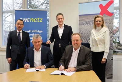 Ebenfalls anwesend bei der Vertragsunterzeichnung waren die Erste Stadträtin Andrea Pospich, EWE-Netzregionsleiter Torsten Wüstenberg und Olaf Stöcker, Leiter Kommunale Angelegenheiten beim regionalen Netzbetreiber.