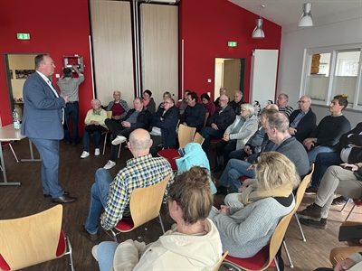 Oberbürgermeister Uwe Santjer besuchte kürzlich im Rahmen seiner Reihe "Santjer's Schnack" den Stadtteil Lehfeld, um sich mit den Bürgerinnen und Bürgern über wichtige Themen auszutauschen. Begleitet wurde er von Peter Miesner, Geschäftsführer der Siedlungsgesellschaft Cuxhaven AG, sowie Baudezernent Andreas Eickmann. Mehr als 30 Anwohnerinnen und Anwohner folgten der Einladung und sprachen mit dem Stadtoberhaupt und seinem Team.