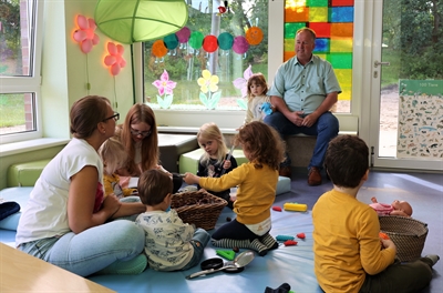 Der Start des zweiten Abschnitts der Sommerreise begann zunächst noch mit einem Besuch in der DRK-Kindertagesstätte Franzenburg (Altenwalde). Den Kita-Einstieg erleichtern, Angebote für Kinder und Jugendliche im Ort schaffen und Synergien nutzen sowie die gemeinsame Erziehung für Kinder mit und ohne Behinderung erfolgreich vorleben. Dem gelernten Erzieher Uwe Santjer liegt auch in seiner jetzigen Funktion als Oberbürgermeister viel an der frühkindlichen Bildung. Und so tauschte er sich nicht nur mit den Kleinsten, sondern auch mit den Erzieherinnen und Erziehern, um Einrichtungsleiterin Astrid Schultheis, über die Chancen und die derzeitigen Herausforderungen aus.