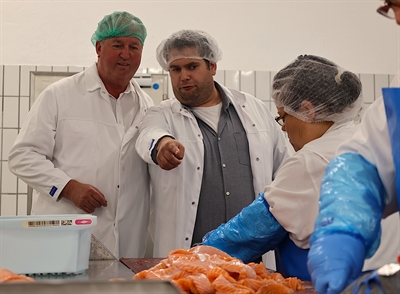 Ein weiteres wichtiges wirtschaftliches Standbein Cuxhavens ist die Fischindustrie. Beim Besuch der Kutterfisch-Zentrale in Cuxhaven ließ sich Oberbürgermeister Uwe Santjer unter anderem zeigen, wie der fangfrische Fisch vor Ort selbst verarbeitet und vermarktet wird. Das Stadtoberhaupt zeigte sich einmal mehr beeindruckt, weiß er aus seiner Familien-Vita heraus, wie viel Leidenschaft für den Job als Fischer vonnöten ist – wie besonders er aber auch sein kann. Dass diese Leidenschaft aber nie vergeht, versprühten Geschäftsführer Kai-Arne Schmidt und Mitarbeiter Jan-Christoph Trilk im Gespräch mit Uwe Santjer. Gemeinsam sprachen sie unter anderem über die Entwicklung der Fischerei, die Unterschiede durch den Brexit und wie Nachhaltigkeit erfolgreich in der Fischerei und im täglichen Geschäftsprozess umgesetzt wird.