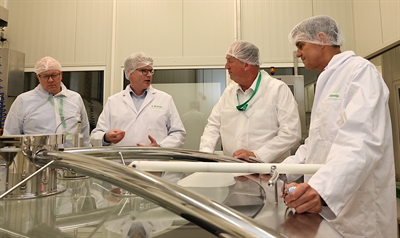 Seit 35 Jahren auf Wachstumskurs befindet sich die Erfolgsgeschichte der Nutrilo GmbH. Als Händler von Mineralstoffen und Vitaminen ist das Cuxhavener Unternehmen mit circa 380 Beschäftigten ein bedeutender, weltweit tätiger Lohnhersteller für eine breite Produktrange von Nahrungsergänzungsmitteln wie z.B. Komprimate, Kapseln oder Pulver. Von Cuxhaven aus in rund 65 Länder machen sich die Produkte inzwischen auf den Weg in die dortigen Märkte. Welche beeindruckenden Prozesse überhaupt hinter der Herstellung eines einzelnen Produkts stecken, davon erhielt Cuxhavens Oberbürgermeister Uwe Santjer im Werk unter der Führung von den Geschäftsführern Jörg Pallentin und Markus Wesjohann einen Eindruck. In den Gesprächen mit den Verantwortlichen ging es unter anderem um die Lösungsansätze des Unternehmens im Umgang mit den gestiegenen Energiekosten sowie mit den aktuellen Herausforderungen im Export-Geschäft. Auch ist die Fachkräftegewinnung in dieser Branche ein großes Thema, die auch mit Unterstützung der Cuxhavener Verwaltung durch die Verbesserung der Infrastruktur gelingen soll, um auch weiterhin eine Erfolgsgeschichte schreiben zu können.