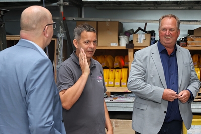 Laserexpress und Hebold Systems stehen in Cuxhaven für ein Portfolio, das in ihrer Branche sicherlich seinesgleichen sucht. In der MT Holding GmbH greifen Metall- und Kunststoffverarbeitung im innovativen Unternehmen Laserexpress und industrielle Mischtechniken bei Hebold Systems ineinander. Oberbürgermeister Uwe Santjer erhielt beim Blick hinter die Kulissen von Geschäftsführer Thomas Juhl und Mitarbeiter Torsten Hagedorn exklusive Eindrücke, wie komplexe Baugruppen mittels modernster Lasertechnologie, umfangreicher Zerspanungstechnik und umfassender Endmontage hergestellt und im Anschluss in alle Welt verschickt werden. An gleich drei Standorten in Cuxhaven sind mehr als 200 Mitarbeitende beschäftigt. Und die Verantwortlichen denken zukunftsorientiert: Mit einem neu geschaffenen Technologie- und Ausbildungscampus sollen nicht nur die eigenen Kräfte aus- und weitergebildet werden, auf langfristige Sicht sollen so auch Synergien in der Branche am Standort Cuxhaven genutzt und unternehmensübergreifend zur Verfügung gestellt werden, um dem Fachkräftemangel entgegen zu wirken.